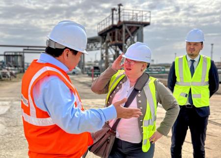 Ақтау портына Транскаспий дәлізінің инфрақұрылымымен танысу үшін Германия Федеративтік Республикасының (GTAI) Орталық/Шығыс Еуропа және Орталық Азия бойынша сауда және инвестициялар ведомствосының менеджері Эдда Шлагер ханым келді, деп хабарлайды Rail-news.kz.