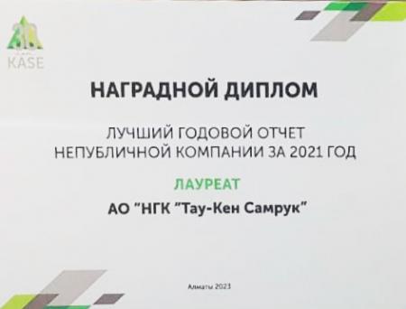 «Тау-Кен Самрук» награжден за «Лучший годовой отчет непубличной компании за 2021 год»