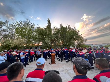 Қаражанбас кен орнына жұмыс сапары аясында «Қаражанбасмұнай» АҚ Бас директоры Ли Тецян мен Бас директордың бірінші орынбасары Қуанышбай Нұрғалиев кешкі мезгілде, жұмыс ауысымынан кейін технологиялық көлік басқармасының №1 өндірістік базасындағы қызметкерлермен кездесті.