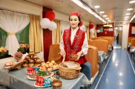 ҚТЖ жолаушыларды ұлттық тағам, сазды әуенмен қуантты