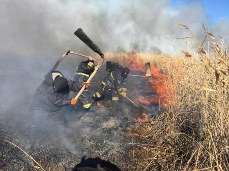 В Атырауской области горит камыш в природном резервате