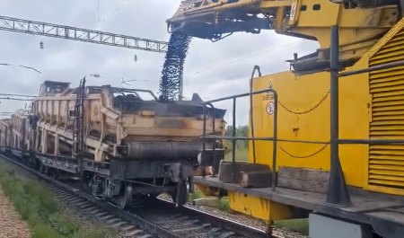 На участке Астана – Анар в настоящий момент с помощью комплекса австрийских путевых машин вырезают загрязненный балласт, передает корреспондент Rail-news.kz Любовь Негембелева