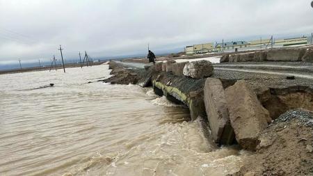 В селе Акжар (бывший посёлок Дальний) Каиршахтинского сельского округ Атырауской области вода размыла дамбу