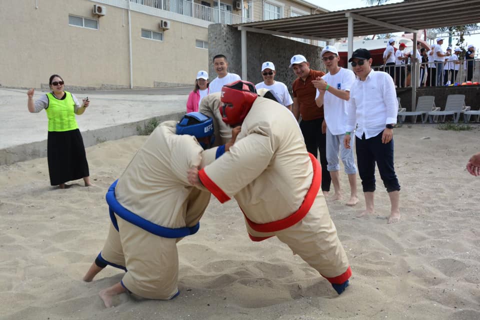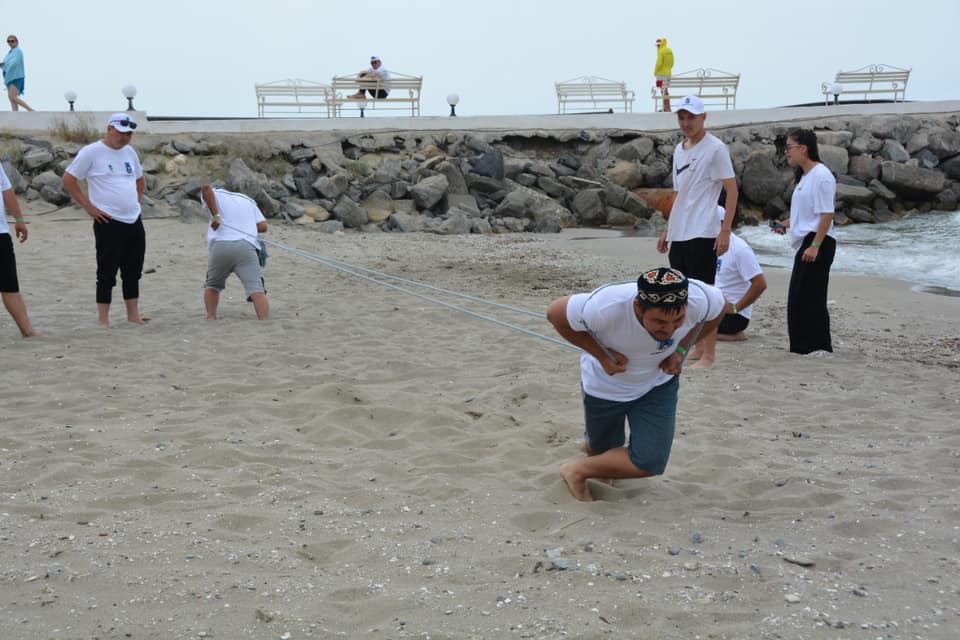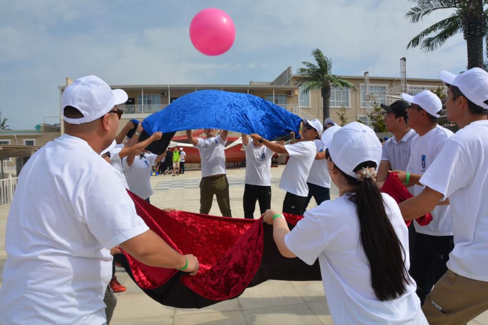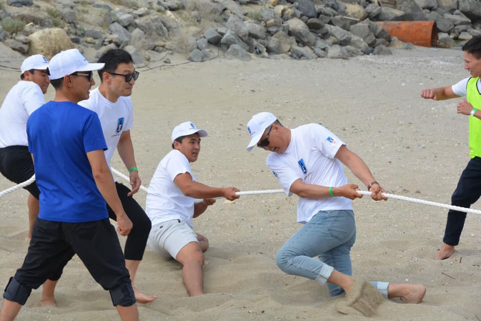 Бұдан соң қызықты сайыстар басталды. Жас мамандар тимбилдингке қатысу үшін командаларға бөлінді. Ұлттық спорт түрлері бойынша өткізілген жарыстар ерекше ұжымдық рух сыйлады. Жас мұнайшылар арқан тарту, асық ату, қой көтеру, ләңгі тебу, көкпар сияқты ойындарда күш сынасты. Әрі қарай қатысушылар бірліктің белгісі ретінде жұдырықтай жұмылып, киіз үй тікті.