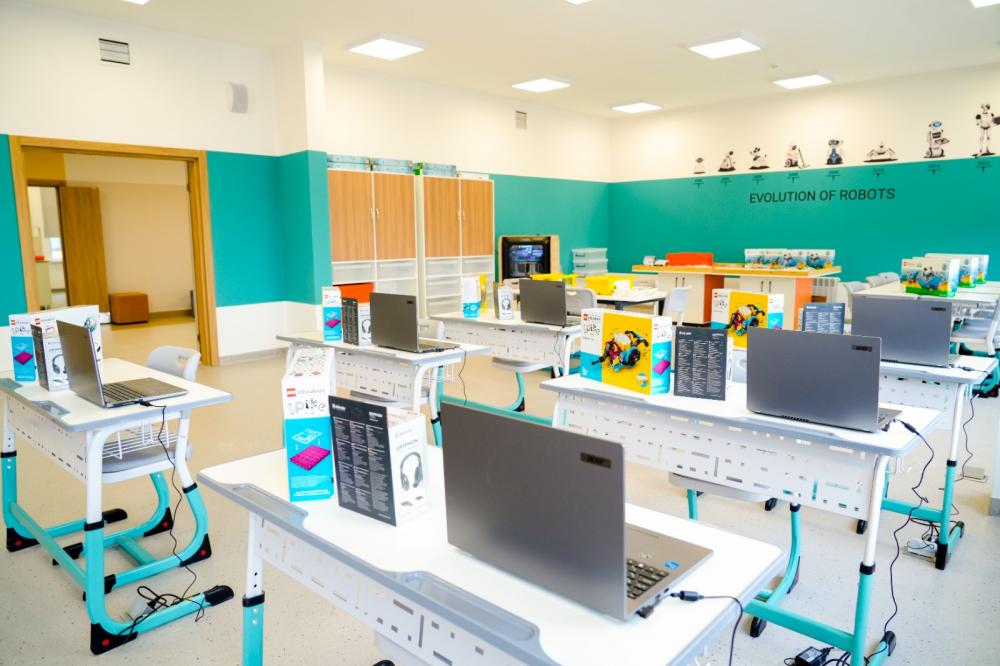 Жаңа, заманауи жайлы мектепте балалар үшін қауіпсіз және функционалды білім беру ортасы жасалған. Бастауыш және жоғары сынып оқушыларына арналған жеке блоктар қарастырылған. Ерекше білім беру қажеттіліктері бар балаларға арналған кедергісіз орта құрылған. Мұнда заманауи пәндік кабинеттер, STEM-зертханалар, робототехника кабинеттері, хореография залы, 4 спорт залы, коворкинг және демалыс аймақтары, ойын және спорт алаңдары бар. Қауіпсіздікке ерекше назар аударылған: цифрлық бейнебақылау камералары мен турникеттер орнатылған.