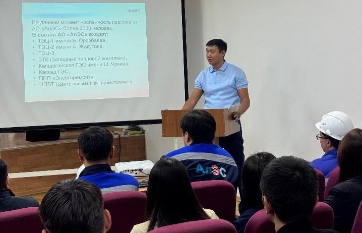 Приветственным словом открыл мероприятие директор станции Карим Сартаев. Он рассказал о значимости энергетики для г. Алматы и региона, о структуре предприятия и задачах его производственных департаментах. Отдельный акцент был сделан на роли молодых специалистов в будущем компании. Директор подчеркнул преимущества работы в АО «АлЭС»: стабильная заработная плата, полный социальный пакет, корпоративные мероприятия и программы развития, включая оплачиваемые учебные отпуска и тренинги.