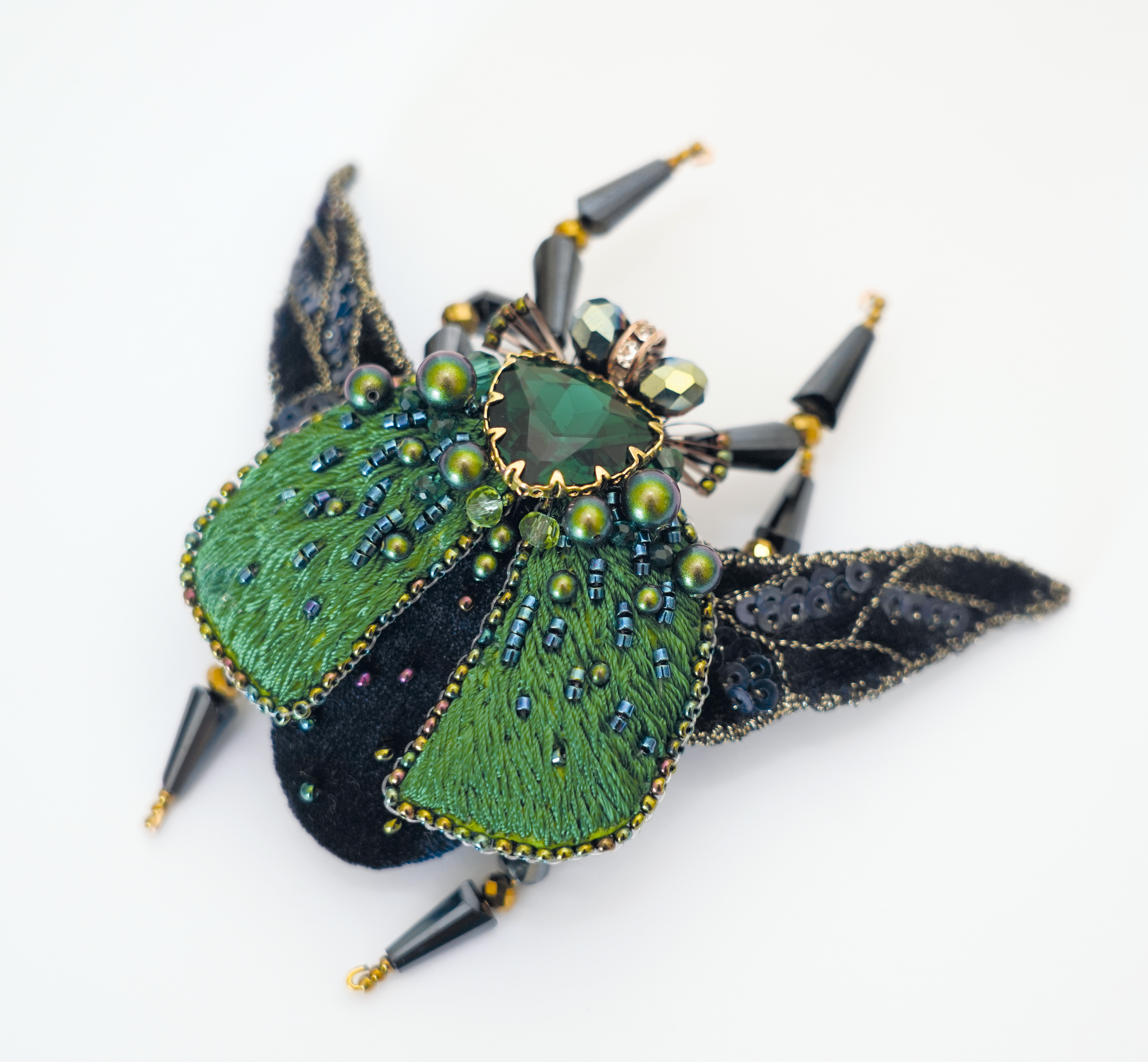 – Есть! Из последних – мне очень нравится жук (на фото). Еще есть кит. Его я делала с огромным наслаждением, это моя первая «серьезная» брошь. Идеи черпаю в интернете. Смотрю работы других мастеров, какие-то наброски. Но никогда ничего не копирую. Эти изделия просто подогревают мою фантазию и интерес. Вот, например, сейчас хочу научиться вышивать гладью и включить элементы этой вышивки в свои изделия. Такую идею я подсмотрела у одной мастерицы.