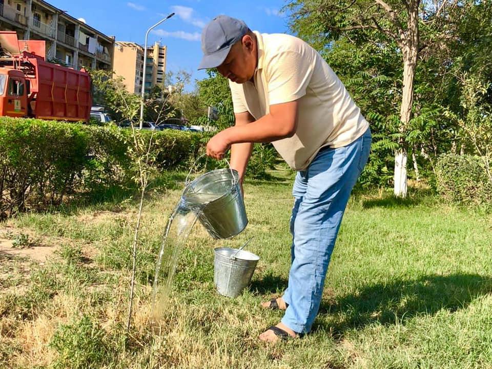 «Қаражанбасмұнай» АҚ жұмысшылары демалыс күндері қалада тазалық жұмыстарын жүргізіп, көшеттерді суарды.
