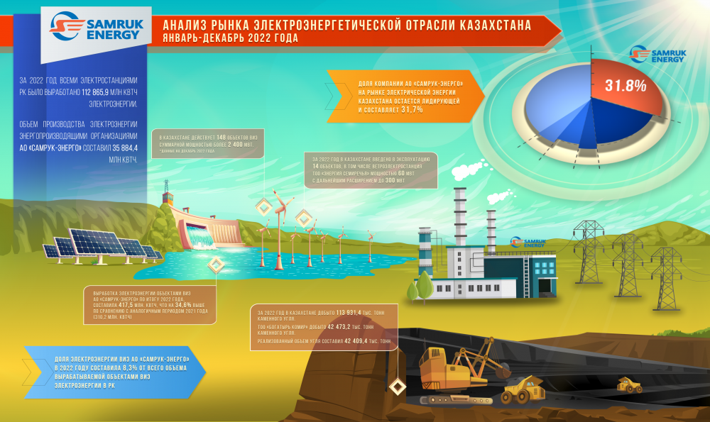 «Самұрық-Энерго» АҚ ЖЭК (СЭС, ЖЭС, шағын ГЭС) нысандарының электр энергиясын өндіруі 2021 жылғы қаңтар-желтоқсанда 417,5 млн кВтсағ құрады, бұл 2021 жылғы ұқсас кезеңмен (310,2 млн кВтсағ) салыстырғанда 34,6%-ға жоғары. «Самұрық-Энерго» АҚ ЖЭК электр энергиясының үлесі 2022 жылғы қаңтар-желтоқсанда ҚР-да ЖЭК объектілері өндіретін электр энергиясы көлемінің 8,3% құрады, ал 2021 жылы бұл көрсеткіш 7,5% құраған болатын.
