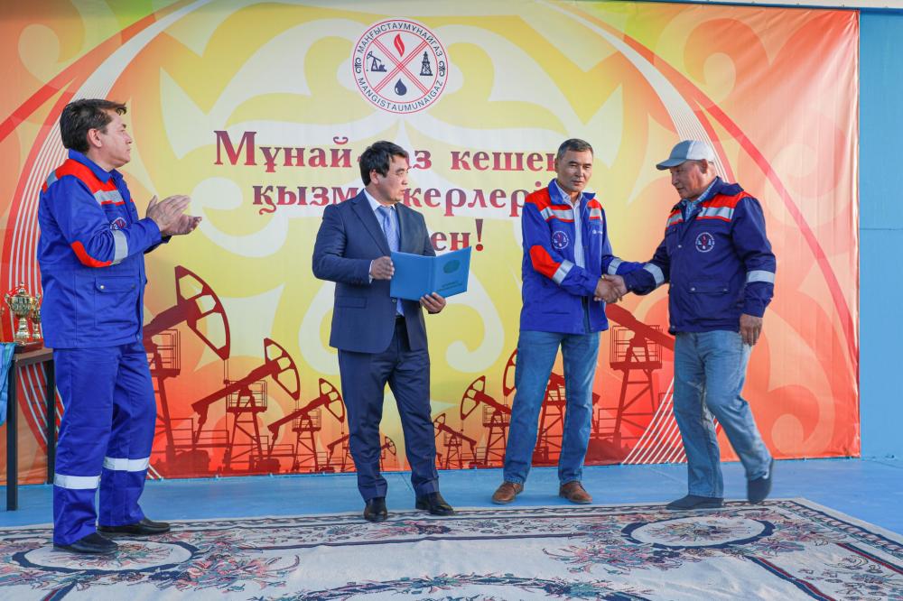 Одан әрі кезек құттықтаулар мен мерекелік марапаттауларға берілді. Сахна төріне Маңғыстау ауданы әкімінің орынбасары Асқар Аққұлов, «Маңғыстаумұнайгаз» АҚ Бас директоры Дәулетжан Хасанов және Компания кәсіптік одақ ұйымының төрағасы Мәди Кентанов көтеріліп, ұжымға деген жылы лебіздері мен құттықтауын жеткізді.
