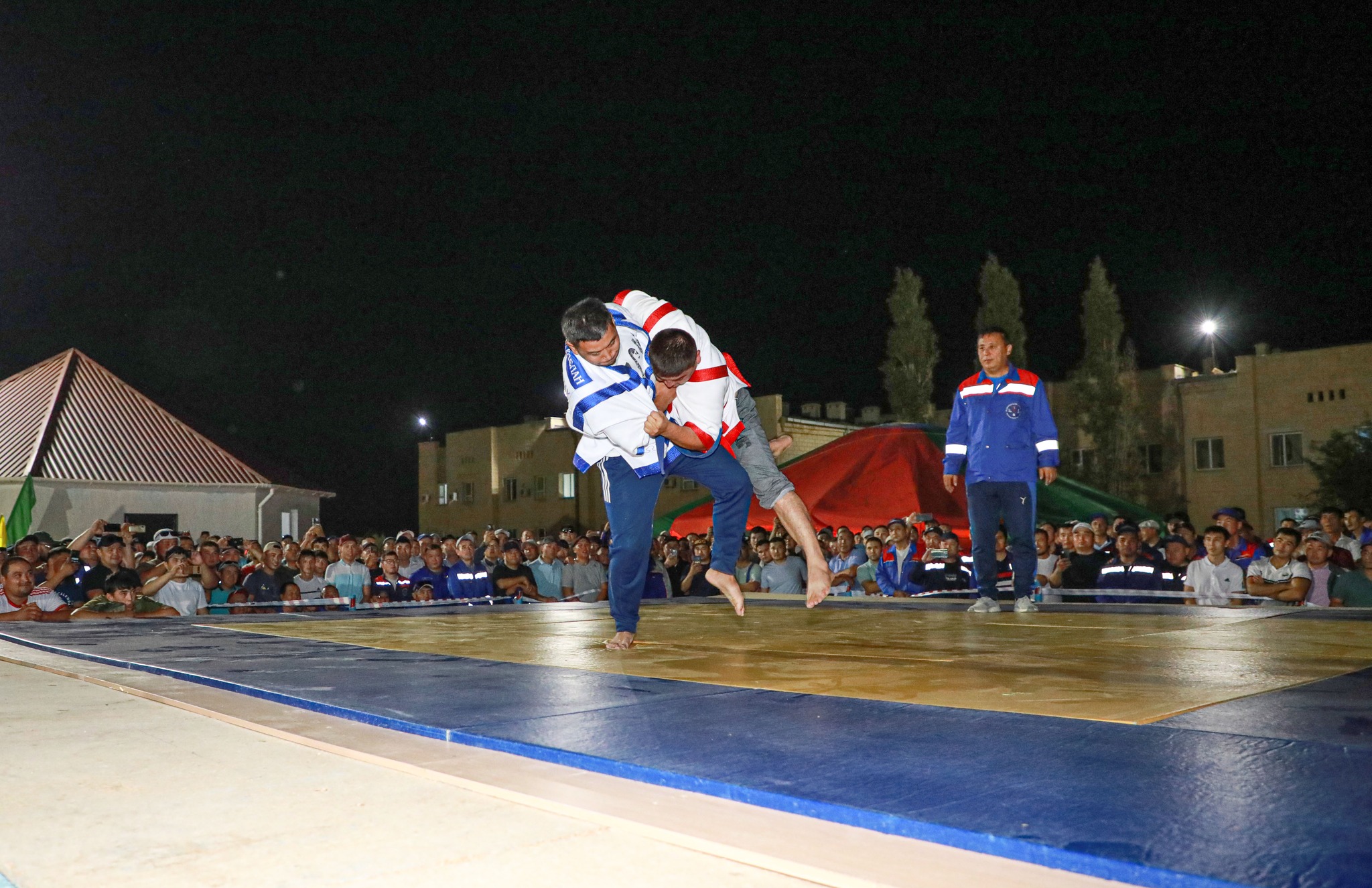 Осы кеште сахна сыртында орналасқан мінберде қазақша күрестен сайыс өтіп, түйе палуандар арасында мықтылар анықталды. Спорттың бұл түрі мұнайшылар арасында үлкен қызығушылыққа ие, сондықтан қазақша күрестен өтетін әрбір сайыс қызу қолдаумен өтеді. Кешегі кеште де дәл солай болды.