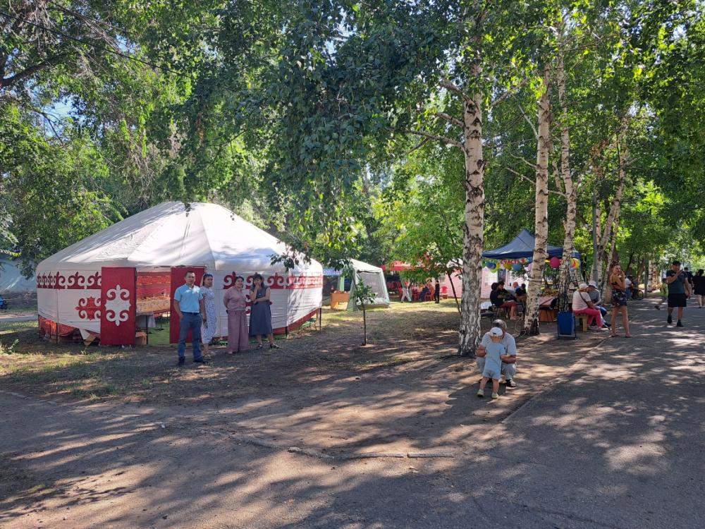 В сквере микрорайона установили юрту, шатры, приготовили угощения. Много желающих собрали спортивные соревнования, в которых участвовали только представители стальной магистрали.