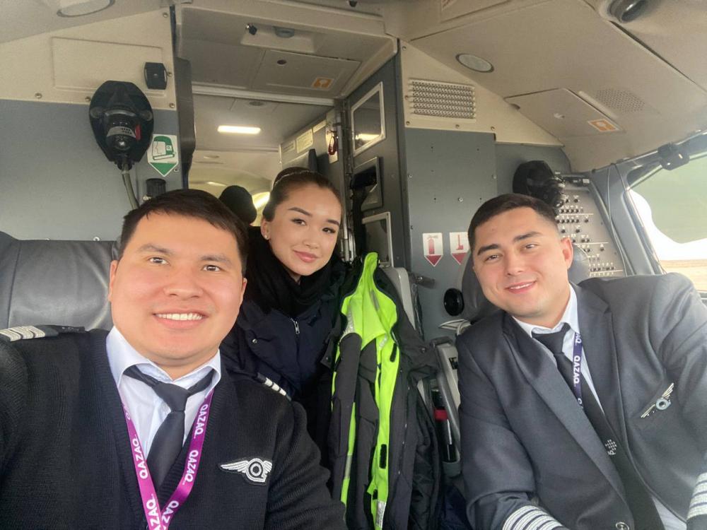 Аяулым, как и другие бортпроводники отмечает высокий командный дух коллег. Что очень немаловажно для слаженной работы и удачного полета.