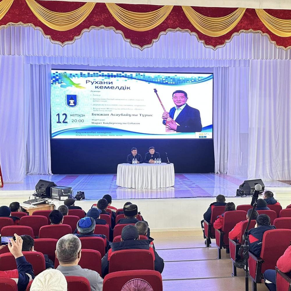 Қаражанбаста мұнайшылардың рухани байлығын молайтып, тұлғалық дамуын нығайту мақсатында «Рухани кемелдік» тақырыбындағы кездесу кеші өтті. Өлкенің қара алтын игерушілерімен сұхбаттасу үшін Мұхтар Әуезов атындағы Қазақ мемлекеттік академиялық драма театр актері, Қазақстанның еңбек сіңірген қайраткері, Мемлекеттік «Дарын» жастар сыйлығының иегері Бекжан Тұрыс арнайы келді.