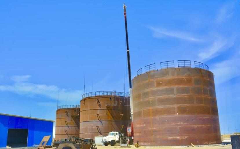 На сегодняшний день интенсивными темпами ведется монтаж металлоконструкций основного здания завода, монтаж стеновых панелей каркаса, устройство бетонных работ и внутренних инженерных сетей. Также устанавливаются фильтрационные оборудования основного цеха, завершены четыре насосных здания различного назначения, построен цех по обезвоживанию шлама. Значительный объем работы выполнен. Осталось провести внутренние инженерные сети.