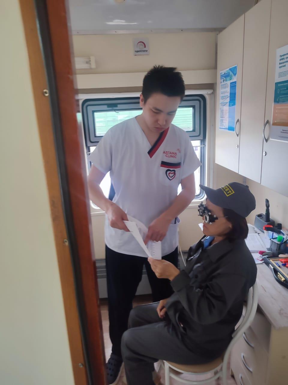 – Әлеуметтік жоба бойынша жолға шыққан пойыз сегіз вагоннан құралған. Төртеуі толығымен медициналық құралдармен жабдықталған. Пойыз жылда әртүрлі кестемен түрлі станция және бекеттерге барады. Қазір Үстірт станциясындамыз. Екі тәулік бойы жергілікті тұрғындарға қабылдау жүргіземіз. Арнайы тексеру, зерттеу құрылғыларымыздан өтудің бәрі ақысыз түрде жүзеге асырылады. Халық дереу қорытындысын біліп, керек кеңесін алып кетуде. Қажет жағдайда кішігірім ем-дом да көрсетеміз. Осы күнге дейін бес мыңнан артық адам қабылдадық. Оның ішінде шұғыл көмек көрсету керек жағдайлар да болды. Бірнеше науқасты шұғыл ауруханаға жатқыздық. Қатерлі ісікке күмәнді адамдар да анықталды. Мұндай науқастарды жергілікті медицина ошақтары әрі қарай бақылауға алады, – деп мәлімет берді телефон арқылы Үстірт станциясынан «Саламатты Қазақстан» мамандандырылған пойызының бас дәрігері Айнұр Егинбаева.