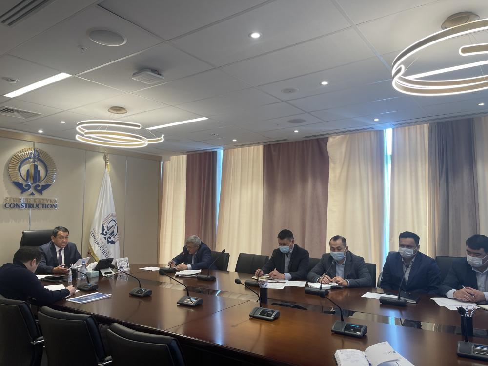 «Samruk-Kazyna Construction» АҚ басқарма төрағасы Мәулен Айманбетов хаттамалық тапсырмаларды орындау, корпоративтік басқару мәселелерін өзектендіру, қоғам жобаларын қаржыландыру, тұрғын үй қорын реновациялау бағдарламасын іске асыруды бастау мәселелері қарастырылған кезекті жұмыс кеңесін өткізді.