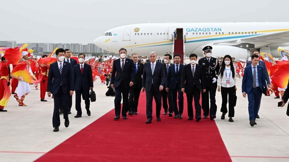 Красная ковровая дорожка, танцы с поясными барабанами. В Сианьском международном аэропорту торжественно встретили лидера Казахстана.