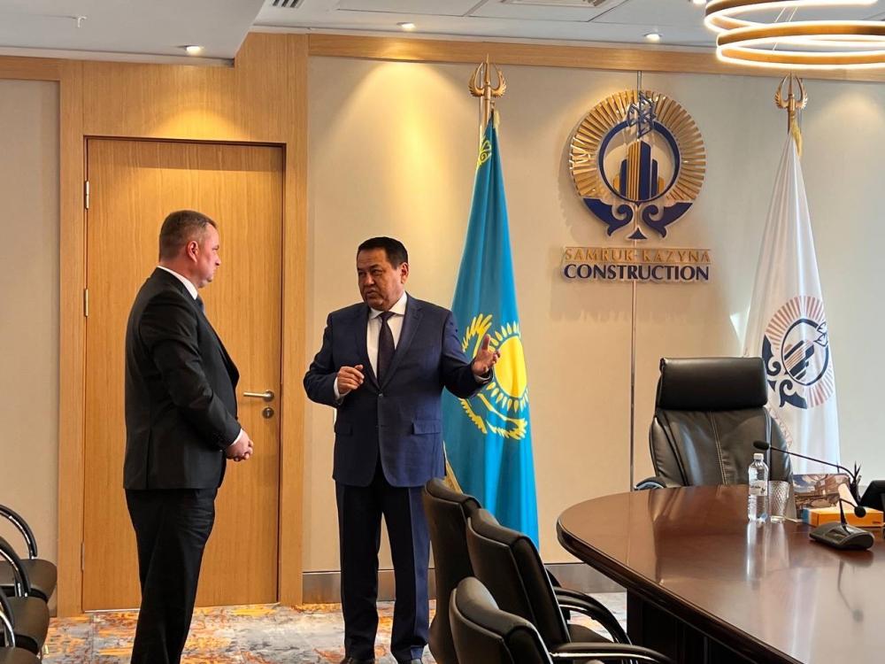 «Samruk-Kazyna Construction» АҚ Басқарма Төрағасы Маулен Айманбетов Беларусь Республикасының Төтенше Өкілетті Елшісі Павел Утюпинмен кездесу өткізді. Іс-шараға елшінің кеңесшісі Леонид Рыжковский, SK Construction баға және сатып алу маркетингі департаментінің директоры Арман Сапекеновпен жобалау және құрылыс басқармасының бастығы Берік Қасенов қатысты.
