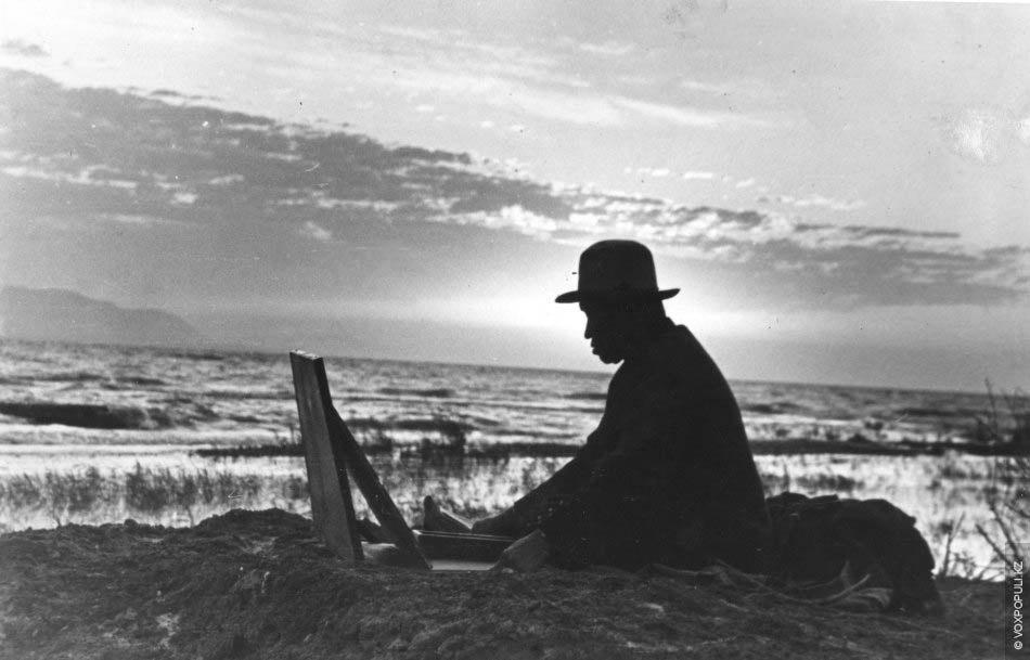 «Әкем сол жерден акварельмен сурет салуды үйренеді. Кейін каникулға шыққанда Хлудов әкеме бояу, қағаз толы қорапты ұстатып «сурет салуды тастама, сенен жақсы суретші шығады» деп ақылын айтқан екен. Келесі жылы сабаққа барайын десе жасы келіп қалған Хлудов қайтыс болып кетіпті. Кейін ол Мәскеуде Н.Крупская атындағы Көркемөнер студиясының кешкі оқуына қатысып, білімін жалғастырған», – дейді суретшінің қызы.