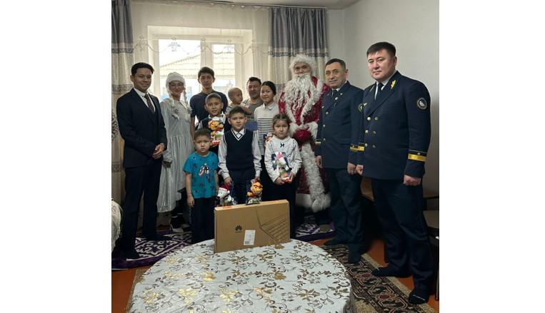 Дегелен станциясында вагон депосының қызметкері Сүният Тарахановтың көп балалы отбасын келе жатқан Жаңа жылмен құттықтады. Оларға ноутбук берілді.