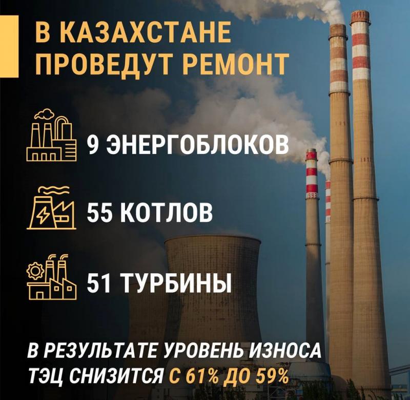 План ремонтов на 2026 год: в Казахстане обновят 9 энергоблоков, 55 котлов и 51 турбину
