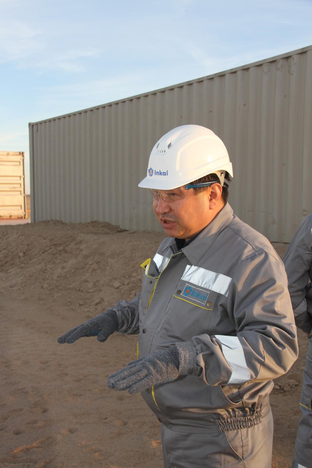 «Производственная площадка состоит из технологических полигонов, которые сооружают над так называемым «рудным телом» - залежами урана. Технологический полигон состоит из «закачных» скважин, через которые «выщелачивающие растворы», где концентрация серной кислоты составляет от 2 до 4 граммов на литр, поступают в рудное тело с целью растворения урана, а также «откачных» скважин, через которые извлекают «продуктивные», то есть, ураносодержащие растворы на поверхность. Затем, путем его переработки с использованием специальных адсорбирующих гранул, получают промежуточный продукт – так называемый ураносодержащий «желтый кек», который должен пройти еще несколько этапов переработки, прежде чем превратится в урановое топливо. Но на этапе добычи безопасность гарантирована, если, конечно, соблюдать определенные меры», - считает директор рудника.