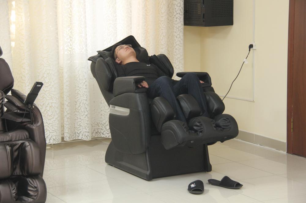 Зато здесь можно понежиться в массажном кресле (на фото) после рабочего дня.