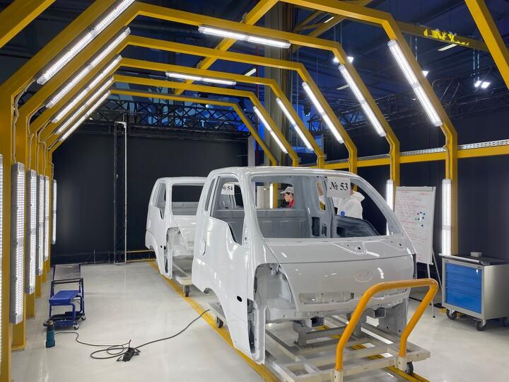 Заводской комплекс состоит из зон сварки, окраски, сборки, а также цеха по производству надстроек. К слову, надстройки, или борта, изготавливаются из металла, который Orbis Machinery закупает у ArcelorMittal, а аккумуляторы - у талдыкорганского производителя «Кайнар-АКБ».