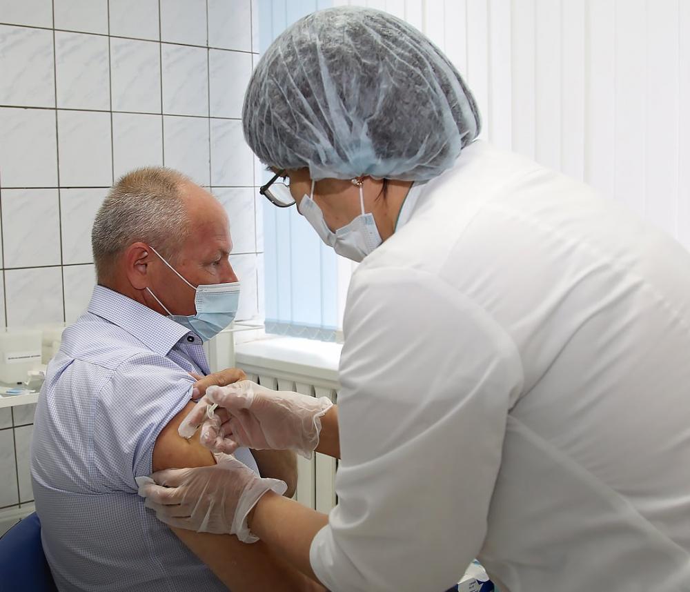Генеральный директор ТОО «Богатырь Комир» Николай Корсаков получил прививку в числе более чем ста сотрудников компании.