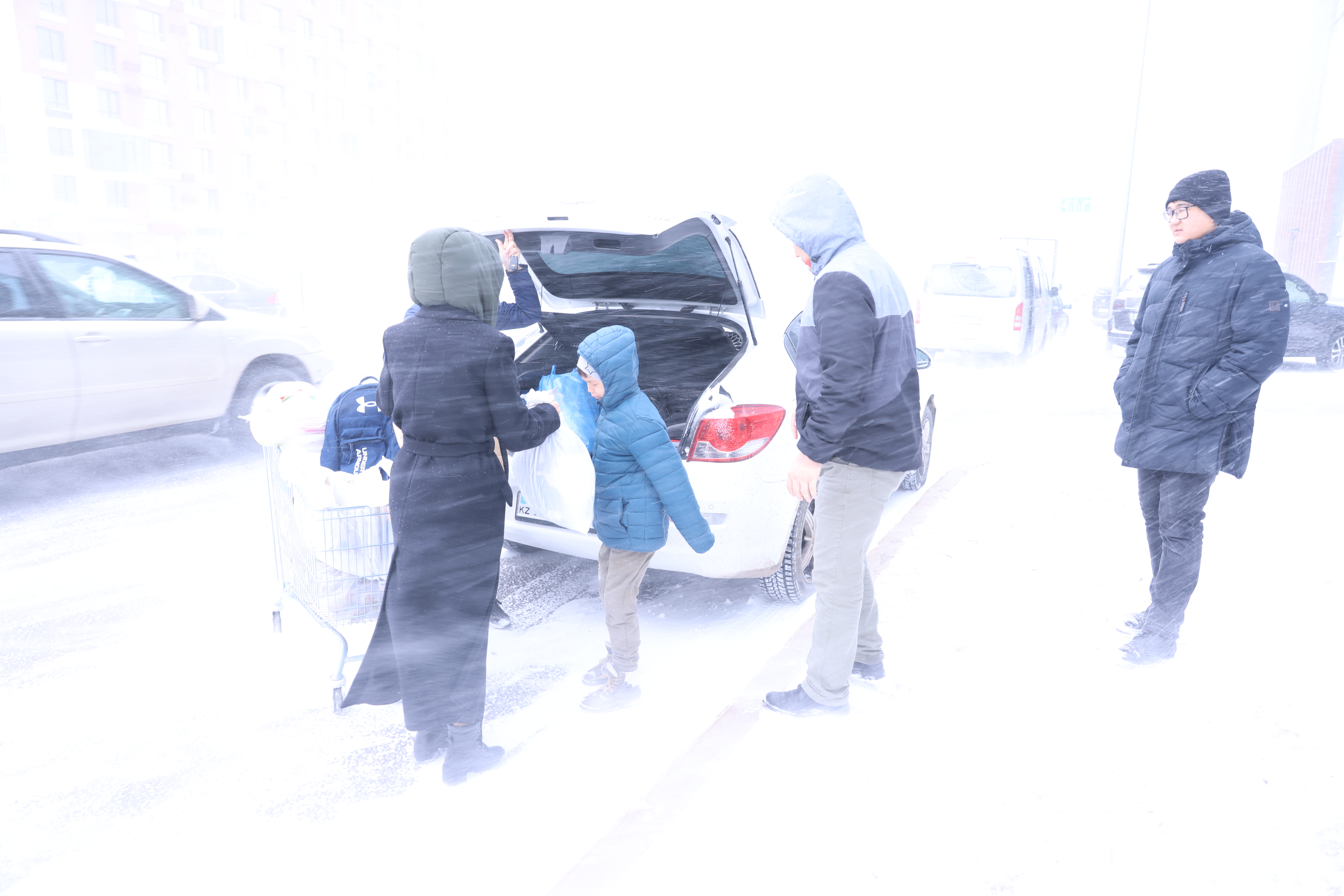 Несмотря на непогоду, 20 волонтеров из АО «Казпочта», АО «Казатомпром», КТЖ, АО «Самрук-Энерго», АО «Тау-Кен Самрук», АО «Самрук Казына Контракт», АО «Qazaq Gaz», ЦСВК, АО «KEGOC»; АО «Самрук-Казына Констракшн» вызвались собрать и развозти продуктовые наборы .