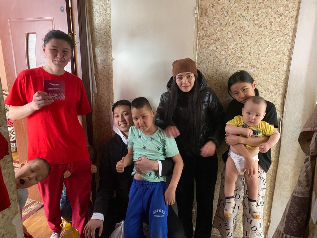 Молодежные союзы Фонда собрали 1 млн 268 тысяч тенге, на которые было закуплено продовольствие. Наборы составили из продуктов первой необходимости - муки, круп, сахара, овощей и фруктов, стоимостью в 40 тысяч тенге. Каждой семье также был вручен продуктовый сертификат супермаркета «Магнум» на 12 тысяч тенге.