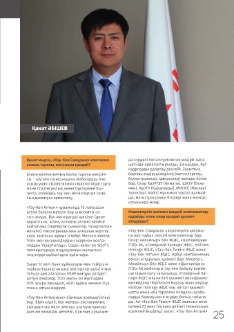 Қанат мырза, «Тау-Кен Самұрық» компания- да күрделі металлургиялық өндіріс қала