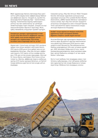 маңызды бағыттарының бірі – геологиялық Association, LBMA) «Good Delivery» сертифика- ның арқасында 2020 жылдың мамыр айында ларының біріне айналдырады. Вольфрам
