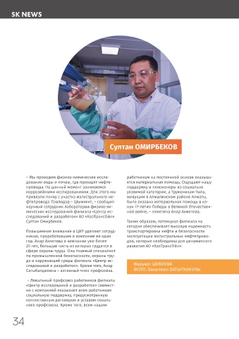 20 лет, большую часть из которых трудится в развития АО «КазТрансОйл».