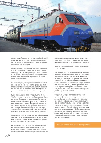 профессии. Стаж ее диспетчерской работы 33 благодаря профессионализму железнодо-