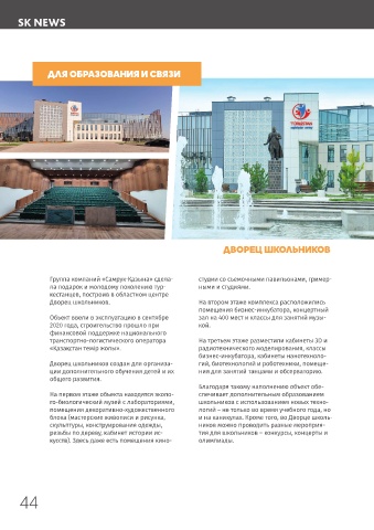Дворец школьников создан для организа- гий, биотехнологий и роботехники, помеще-