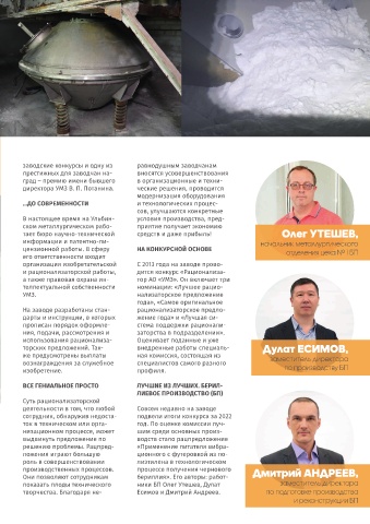 ции. Ежегодно на УМЗ подавалось до 40–50 заявок на изобретения, внедрялось 800–1300 рациона- Они позволяют сотрудникам бериллия». Его авторы: работ-