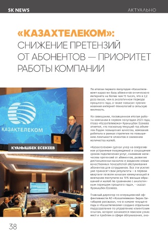 КУАНЫШБЕК ЕСЕКЕЕВ «Казахтелеком» сделал упор на оператив- удовлетворенности и лояльности клиен- Показатель EBITDA улучшился более чем на