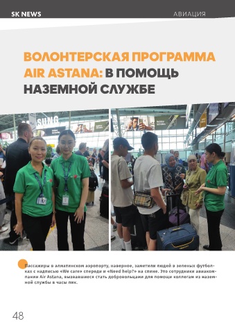 пании Air Astana, вызвавшиеся стать добровольцами для помощи коллегам из назем- очереди на стойках регистрации, кон-
