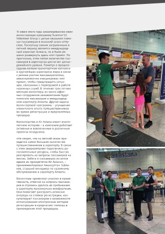 пании Air Astana, вызвавшиеся стать добровольцами для помощи коллегам из назем- очереди на стойках регистрации, кон-