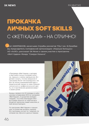 АО «АлЭС», рассказал SK News о своем участии в программе Казахстана. В частности, мы прошли тре- менеджером Департамента управления