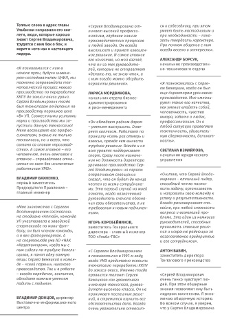 знают Сергея Владимировича, производственных процессов зать твердость характера. таких ситуаций было много. ровича всегда. Наверное, так честность. Он искренне пере-