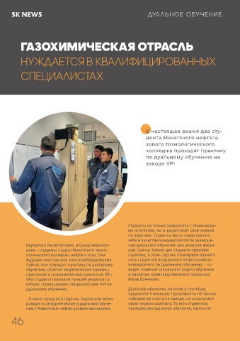 по дуальному обучению на свои знания, говорит, что в будущем пла- отметил, что коллектив газохимического