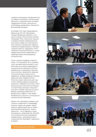 Отметим, что QazaqGaz НТЦ заинтересован в на подготовку молодых специали-
