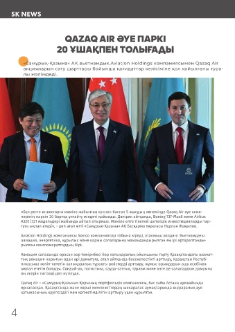 «Бұл ретте инвесторға мәміле жабылған күннен бастап 5 жылдың көлемінде Qazaq Air әуе кеме- қатысушылары Қазақстан мен Малайзия арасында инвестиция тарту, өнеркәсіп,